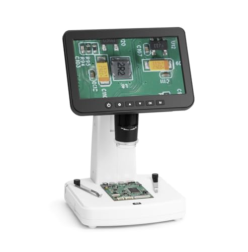 WADEO Digitalt mikroskop med 7 tums LCD, 50-1200X, 1080P, USB-mikroskop med metallstativ och LED-lampor, kompatibel med PC/TV, Windows/Mac OS, 32 GB kort