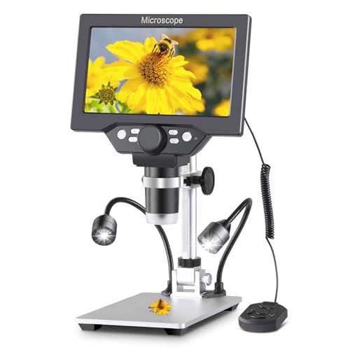 Koolertron digitalt mikroskop med ljus och fjärrkontroll, 7 tum 1080P mikroskopkamera för vuxna/barn (32 G TF)