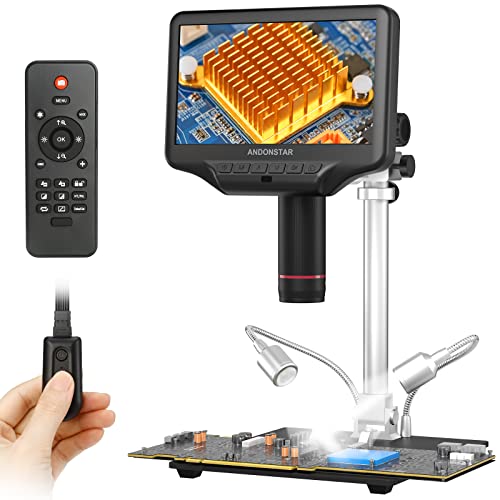 Andonstar AD246S-P HDMI-digitalt mikroskop med 7-tums skärm, 4 000 x 3-objektiv 2160P UHD-videoinspelning, myntmikroskop för felmynt, biologiskt mikroskop-kit för vuxna