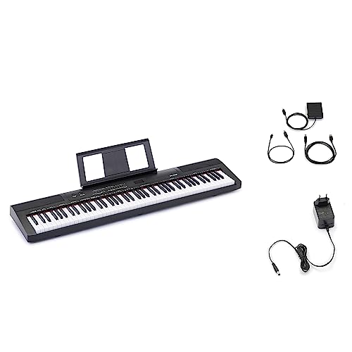Amazon Basics - bärbart digitalt piano med 88 halvviktade tangenter, sustainpedal, 2 högtalare, 140 ljud, 200 rytmer, 16 demolåtar, metronom, inlärningsläge, svart