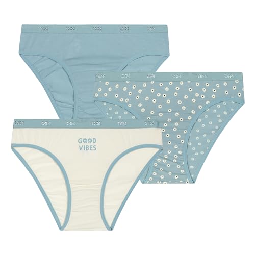 Dim Trosor för flickor EcoDim bomullsfickor mjuk och bekväm x3, Vitt och blått, 8 �r