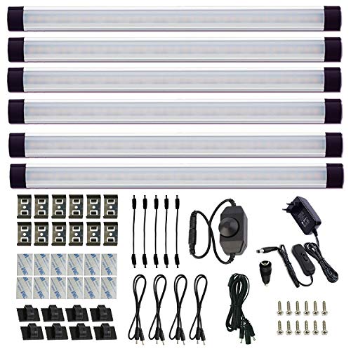 AIBOO LED-skåplampor set om 6, dimbar underbyggnad för kök med strömbrytare, ultratunn köksbelysning LED-list 230 V, för skåp, garderob, bokhylla (kallvit)