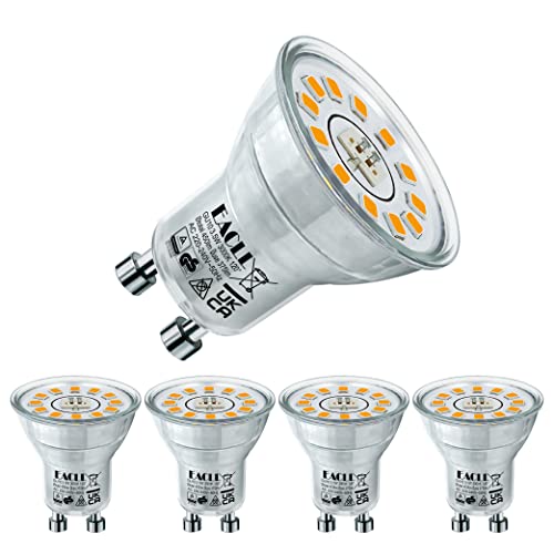 EGLO GU10 LED-lampa, dimbar, extra platt glödlampa för infällda spotlights, 4 watt, 400 lumen, reflektorlampa, varmvit, 2 700 kelvin, installationshöjd 3,5 cm, diameter 5 cm