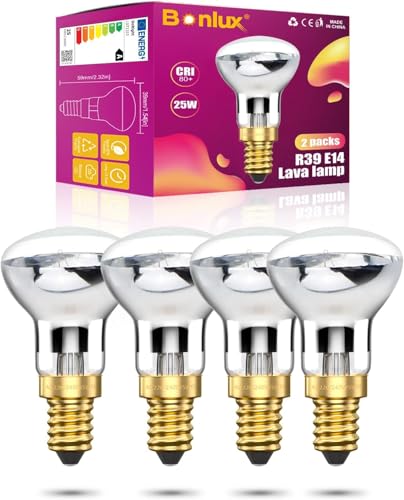 Bonlux 25 W R39 glödlampa E14 lava-päronlampa lava-glödlampa reflektorlampa dimbar varm vit 2400 K–2600 K, skruv lavalampor strålkastare 240 V liten Edison skruv SES 360° strålvinkel (4 stycken)