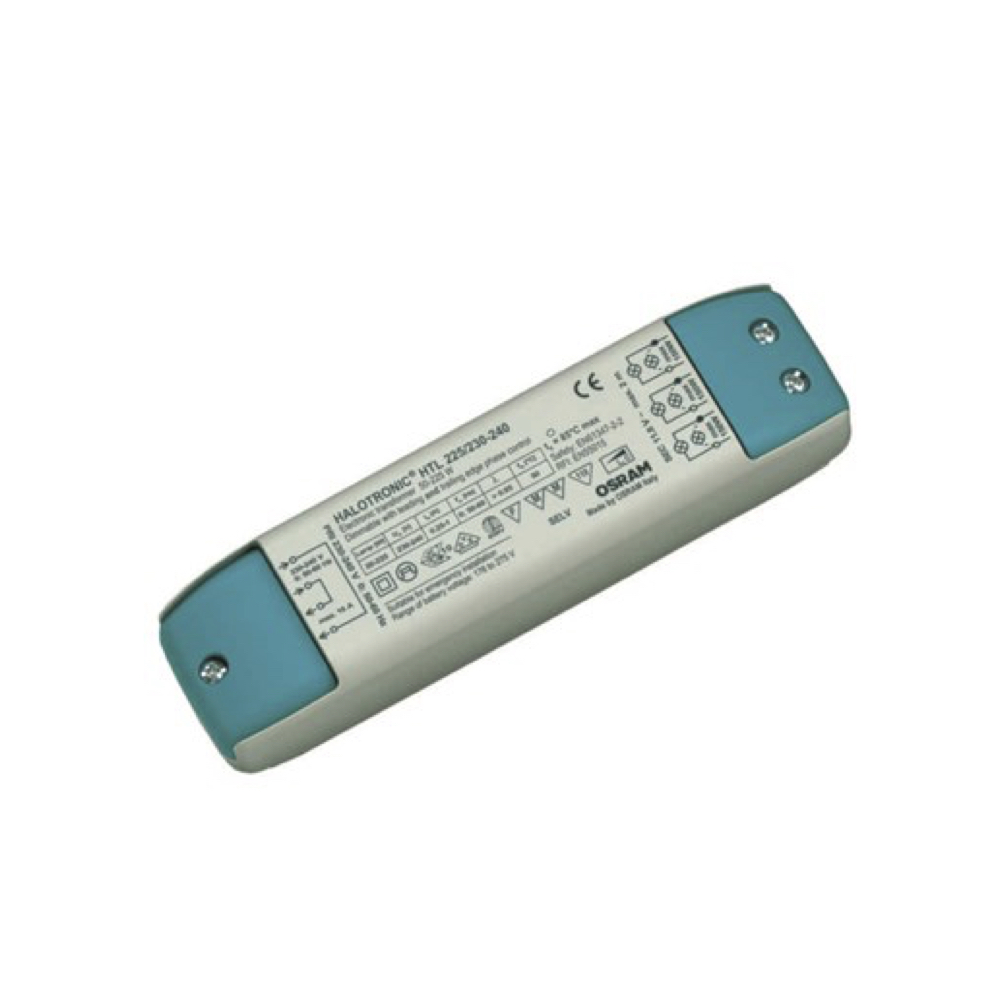 Elektronisk dimbar transformator i smalt format för halogenglödlampa, 230 V till 12 V, 35 W till 105 W