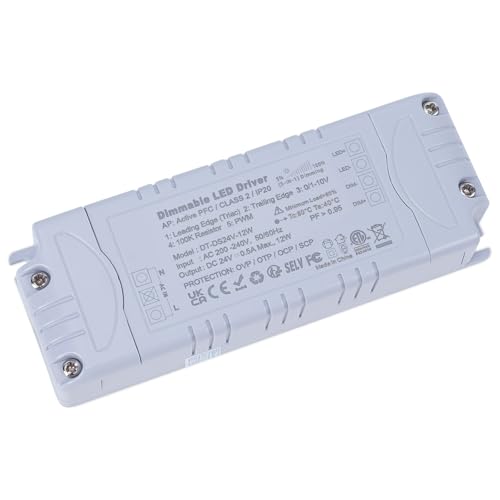 YAYZA! LED-transformator 24V 12W 1A Dimbar Drivrutin, 180-240V AC till 12V DC Förare, IP44 LED AC/DC Nätadapte med Konstant Spänning, för Ljuslister, Lampor, Motljus, Fönsterljus