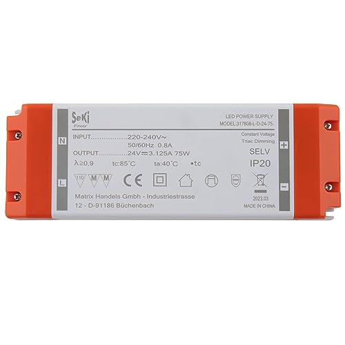 SeKi 24 V DC 75 W 3,12 A konstant spänning LED-drivare TRIAC dimbar, transformator, växelströmförsörjning; ingen minsta belastning, inget buller/LED-flimmer, MM godkänd