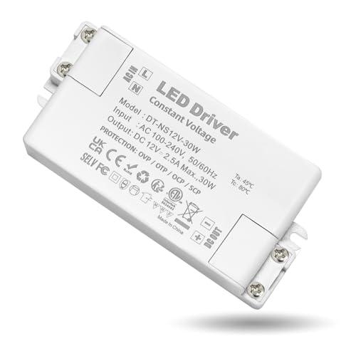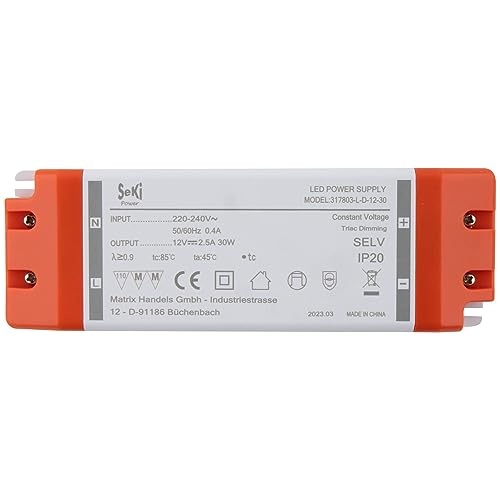 SeKi 12 V DC 30 W 2,5 A konstant spänning LED-drivare TRIAC dimbar, transformator, växelströmförsörjning; ingen minsta belastning, inget buller/LED-flimmer, MM godkänd