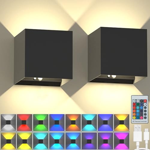 Sladdlös USB Uppladdningsbar Vägglampa, Intelligent RGB Vägg Lampa Med Fjärrkontroll, 12 Färgändringar + 100 Dynamiska Lägen, LED Dimbar Batteri Vägglampa Med Strömbrytare, 4000mah, Svart, 2 Pack