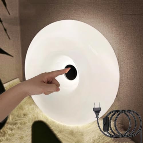 LOGT Led-vägglampa med Kabel och Kontakt, Modern Orange Donut Lampa Vägglampor Plug eller Plug in Sänglampa Rund Vägglampa Dimbar Touch Control 12W Deco Nattlampa Glas Ring Närvägglampa,White
