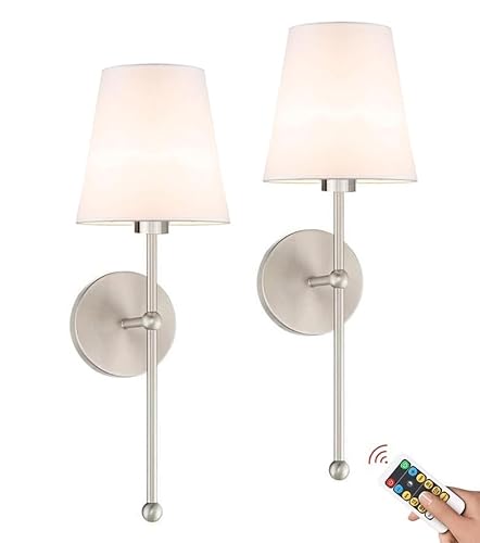 Uppladdningsbar vägglampett batteridrivna vägglampor set med 2 med fjärrkontroll, trådlös vägglampa batteridrivna vägglampetter, inte trådbunden dimbar tyg vägglampa för vardagsrum sovrum hall (ser