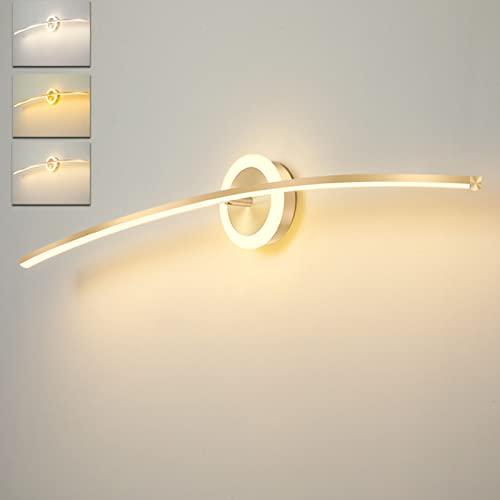 LED-vägglampa inomhus Modern, 12W vägglampa Dimbar med 3 ljusfärger, akrylvägglampa i guld för sovrum vardagsrum trapphus hall
