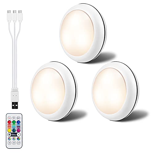 LEDGLE Skåpbelysning skåplampa, USB-uppladdningsbara dimbara lampor för skåpkök, Stick på trappljus med fjärrkontroll, 16 färger, 3 tidfunktioner