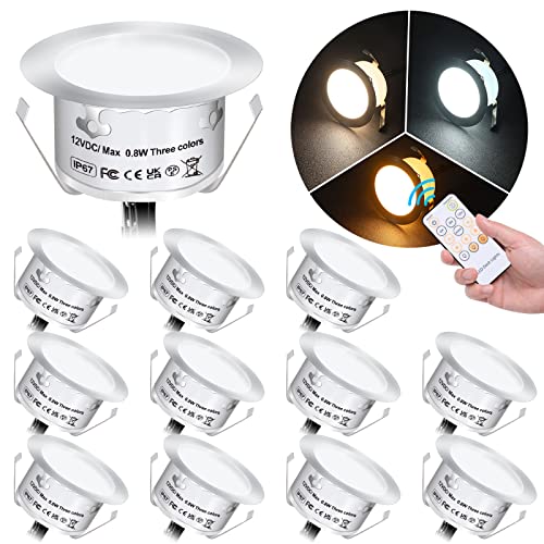 dystaval Terrassbelysning, set med av 12 infällda terrasstrålkastare med fjärrkontroll, dimbara – LED-lampor för utomhus, IP67-vattentäta, 0,8 W, Ø 42 mm, för trädgård, gångvägar och trappor