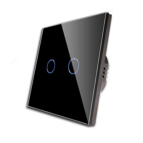 CNBINGO Dubbel dimmerströmbrytare för dimbara LED-lampor, svart pekskärms-strömbrytare, glaspanel och status-LED, neutral ledare behövs inte, 2 stycken 1-poliga strömbrytare