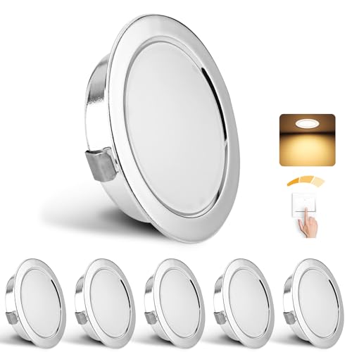 MARVIX Svarta LED-spotlights 12 V 24 V dimbara infällda lampor för husbil, husvagn, husbil och båtbelysning (kall vit, 6 000 K) – 6-pack