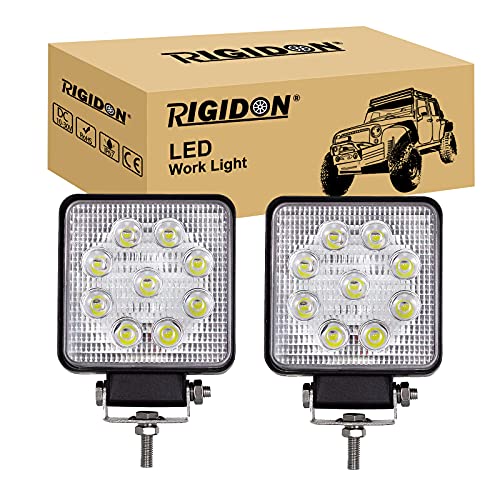 RIGIDON 2 st 10 cm fyrkantig LED-arbetsstrålkastare, 4 tum 27 W 12 V 24 V lampa, floodlights arbetsljus för offroad bil lastbilar SUV 4 x 4 traktor båt, dimljus, 6 000 K, vit