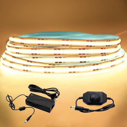 Arotelicht COB LED-remsa 12V 5m COB LED-remsor varm vit 3000K 320LEDs/m Dimbar Led Light Tape High Density with Dimmer Adapter IP20 for Bedroom Kitchen Home Interior Decoration