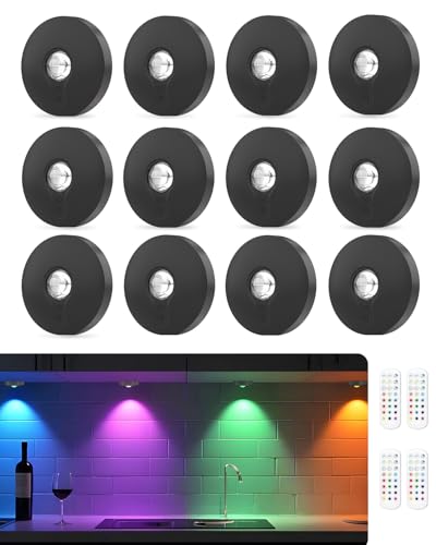 WUYOR Uppladdningsbara pucklampor med fjärrkontroll, 1 500 mAh batteridrivna knapplampor, 13 färger dimmer och timer underbyggda lampor, trycklampor, skåplampor svart 12 st