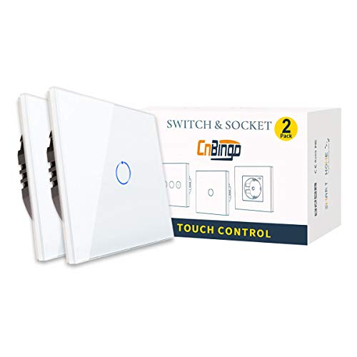 CNBINGO 2-pack dimmer strömbrytare för LED-lampor - touchströmbrytare infälld - dimmer enkel i vitt - väggströmbrytare med glaspanel och statusLED