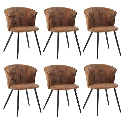 MEUBLE COSY Matrumsstolar, uppsättning med 6 köksstolar, stoppstol med armstöd, fåtölj av vintage, konstgjord mockasits, metallben, brun, 55 x 58 x 75,5 cm