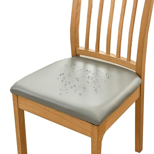HOMECOVER Dining Chair Seat Covers Set Of 4 Waterproof Seat Slipcover, PU Leather Dining Chair Slipcovers Removable Stretch Dining Chair Seat Covers For Dining Chairs-set of 4-grå
