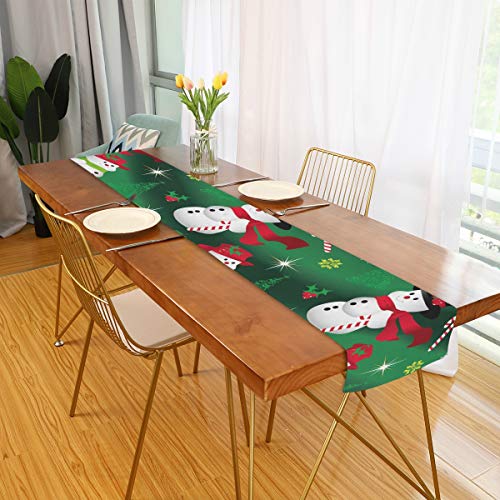 ZZCDD Bordslöpare Mönster med Snowman Long Table Decor Runner Heat Resistant Washable Wipe Clean Dresser Scarf For Dining Room Party Bröllop Kitchen 13x70 Tum