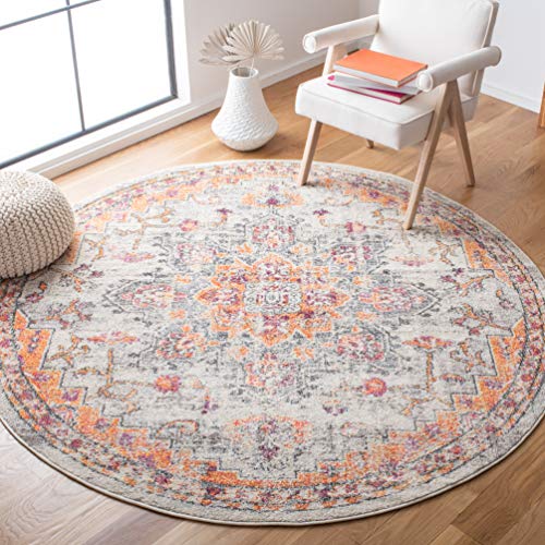 SAFAVIEH Madison Collection MAD473E Boho Chic Medallion Distressed Non-Shedding Living Room Dining Bedroom Foyer Area Rug 3' x 3' Round Beige/Orange