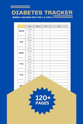 Diabetes Tracker & Weekly Log Book for Type 1 & Type 2: Track Blood Sugar Before & After Meals (Breakfast, Lunch, Dinner, Bedtime) + Weekly Meal Planner & Health Journal