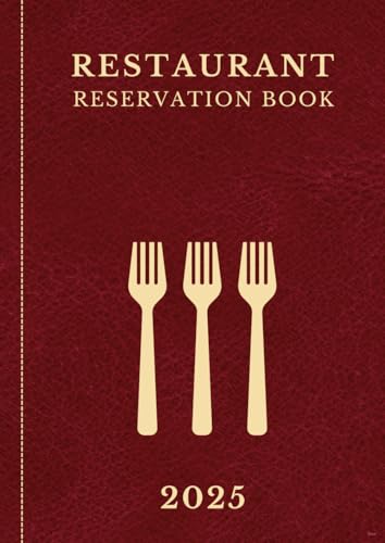 Reservation Book for Restaurant 2025: Dinner and Lunch 1 Day = 2 Pages | Daily Hostess Table Reservation 2025 (365 Days) | January - December 2025, Dated, Customer Contact Pages, Red with Gold.