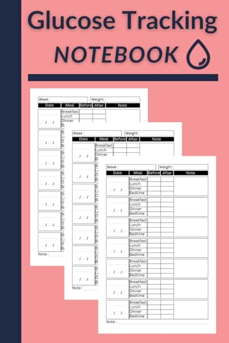 Glucose Tracking Notebook: Beautiful Diabetes Glucose Reading Record. Daily Tracking for Breakfast, Lunch, Dinner, and Bedtime with Weekly Weight, 106 Weeks – 2 Years of Use. For Type 1 and Type 2 Diabetics