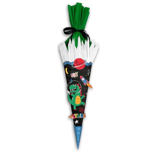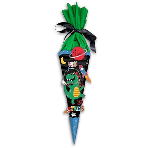 Ursus 9870022 – Skolväskor-pysselset Easy Line Space Dino, svart, 6-kantigt, förskuren 3D-färgwellpapp, 68 cm, diameter ca. 20 cm, för att tillverka en individuell sockerpåse