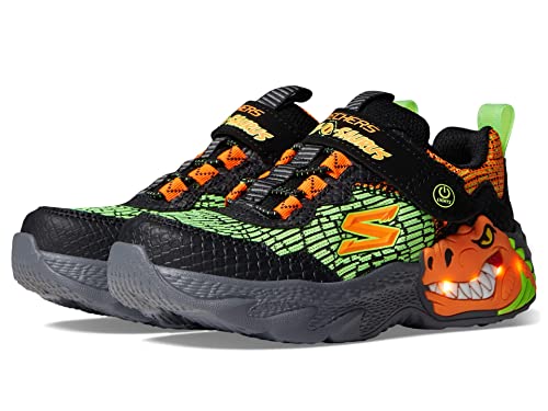 Skechers Kids Boy's Dino-Lights Sneaker, Black/Orange, 3 Little Kid