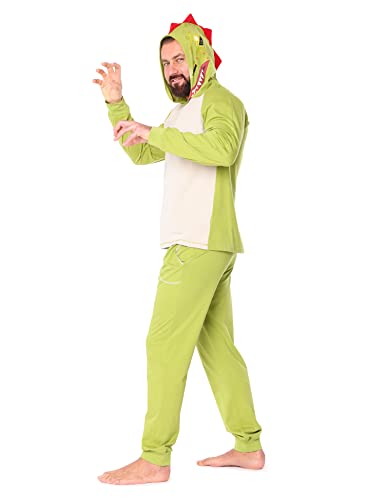 Ladeheid Herr långärmad tvådelad Pyjamas för män djurkostym förklädnad LA40-239 (Dino Grön, S)