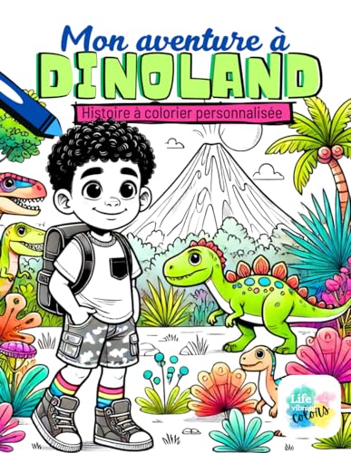 Mon aventure à Dinoland: Histoire personnalisée à colorier - Choisis ton personnage - Noms à insérer - 39 pages incluant 6 jeux - Français (Québec) - Garçon cheveux frisés (2)