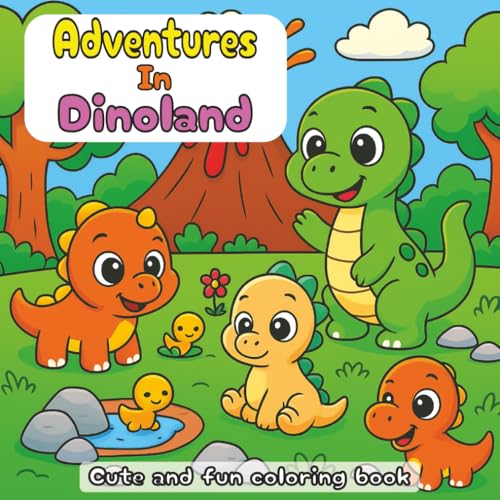 Dinoland Coloring Book: 40 Cute and Fun Dinosaur Coloring Pages | Relaxing Dinoland Adventures for Adults, Teens and Kids
