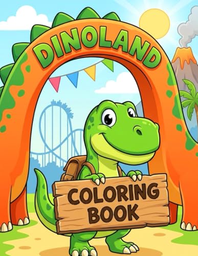 Dinoland Coloring Book: Fun Dinosaur Coloring Book for Kids Ages 4–8: Cute Dinos, Theme Park Adventures, Roller Coasters, Volcanoes and More for Boys and Girls