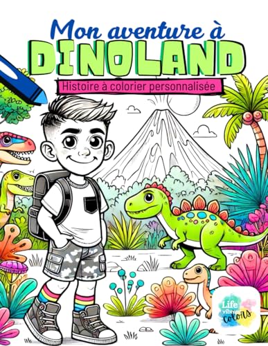 Mon aventure à Dinoland: Histoire personnalisée à colorier - Choisis ton personnage - Noms à insérer - 39 pages incluant 6 jeux - Français (Québec) - Garçon cheveux moyens (1)