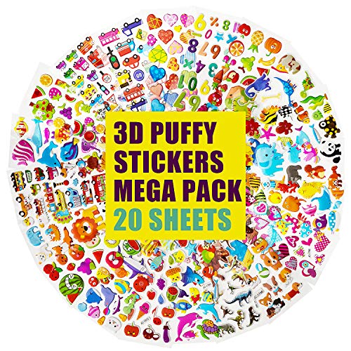 SAVITA Klistermärken för barn 500+ Variety Pack Puffy 3D-klistermärken, 3D-klistermärken med bokstäver, siffror, fjärilar, fiskar, dinosaurier och mer