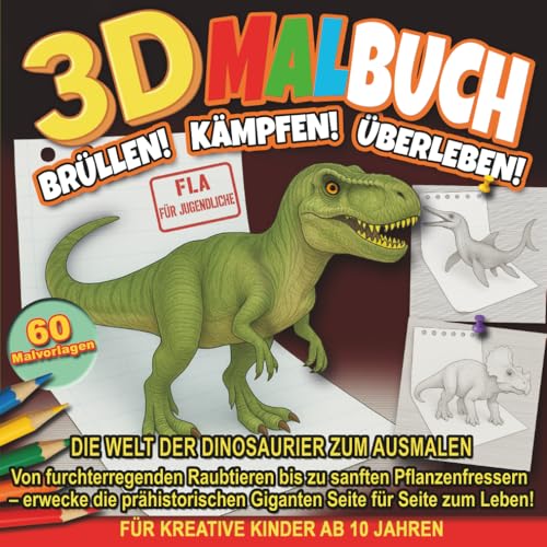 3D Dinosaurier Malbuch: Realistische Prähistorische Kreaturen: 60 Einzigartige Designs mit Realistischem 3D-Effekt – Großer Malspaß für Kinder (10+), Jugendliche & Erwachsene