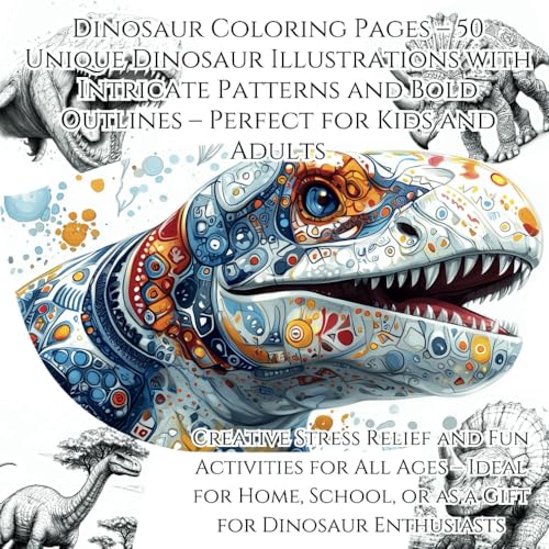 Dinosaur Coloring Pages – 50 Unique Dinosaur Illustrations with Intricate Patterns and Bold Outlines – Perfect for Kids and Adults: Creative Stress ... School, or as a Gift for Dinosaur Enthusiasts
