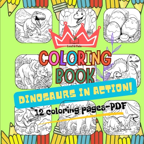 Dinosaurs in Action! – Coloring Book for Kids 3-10: 12 cute dinosaur coloring pages for creative kids ages 3–10