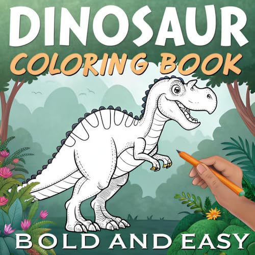 Dinosaur coloring book bold and easy: 40 single-sided dinosaur coloring pages for kids & adults, simple prehistoric scenes for relaxation and stress relief