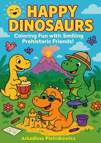 Happy Dinosaurs – A Fun Coloring Book for Kids: Fun Dinosaur Coloring Pages + Activities, Certificate & Creative Extras for Kids Ages 3–7