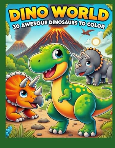 Dino World: 30 Awesome Dinosaurs to Color: Fun and Cute Dinosaur Coloring Pages for Kids