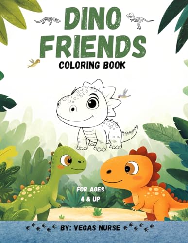 Dino Friends Coloring Book: Fun and Easy Dinosaur Coloring Pages for Kids 4 & Up | Jungle Adventure and Prehistoric Friends