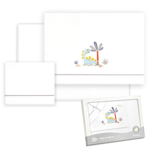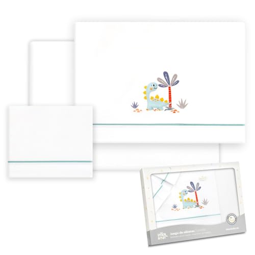Interbaby - Bomullslakan, bil/mos/liggdel - dinosaurie palmträd - set 3 st. sänka + bänkskiva + örngott