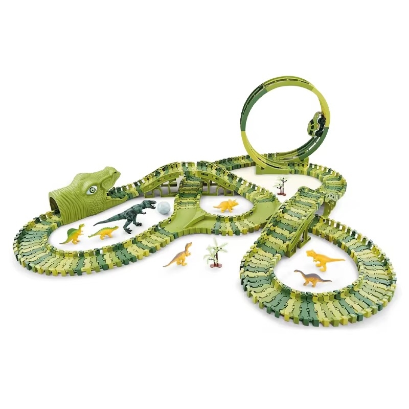 Stor Bilbana Dinosaurie dinosauriebana med bil och 260 delar – flexibel bilbana med dinosaurier, broar och tunnel