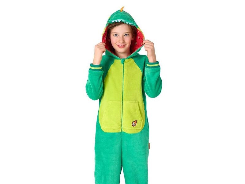 Rubies Dinosauriedräkt för pojkar och flickor, jumpsuit med huva och svans, officiella Rubies för karneval, halloween, jul och födelsedag