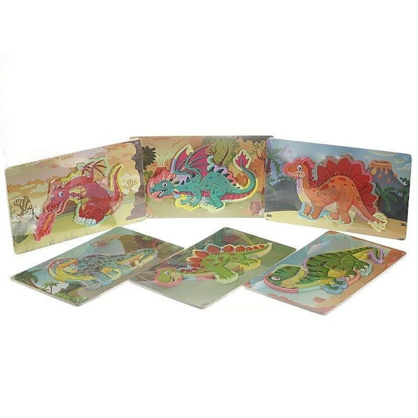 Pussel dinosaurier, stl. 28,5x36,5 cm, 35-69 brickor, 3 st./ 1 förp.